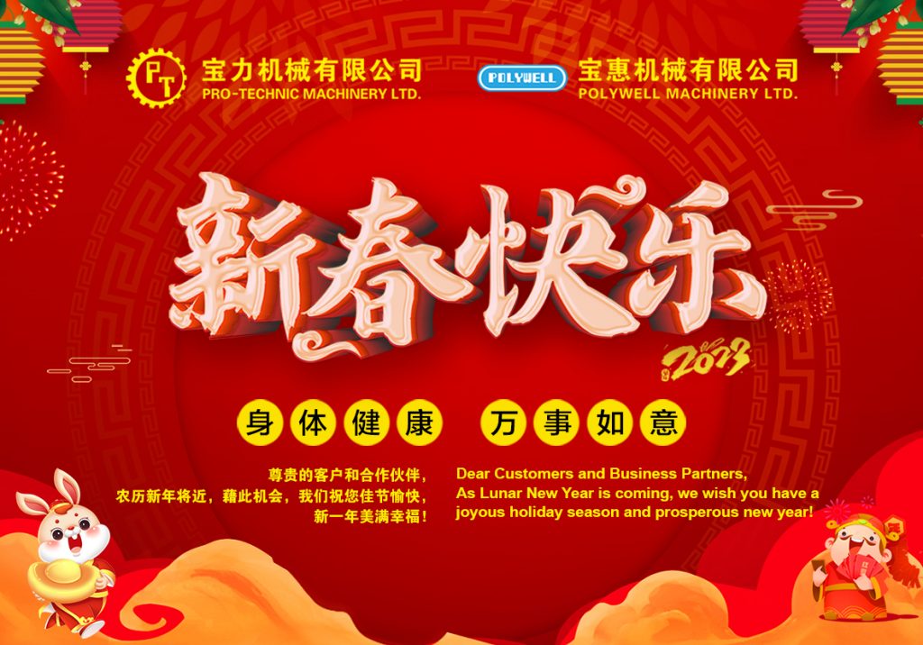 !「宝力机械集团」全体员工敬祝大家兔年大吉、万事顺意、生意兴隆、事业蒸蒸日上。