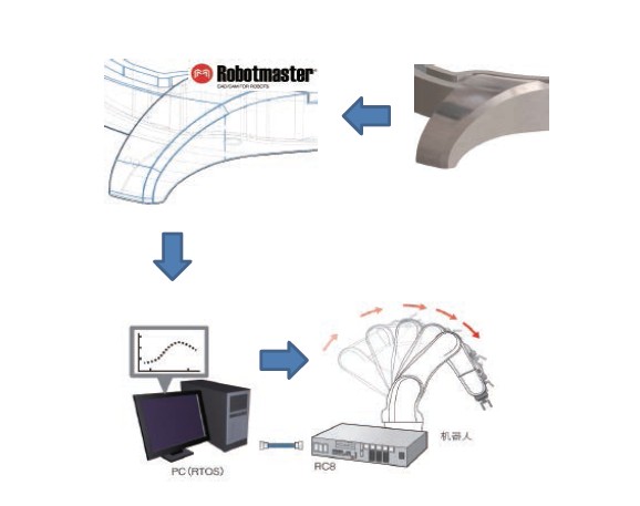 应用Robotmaster 软件离线编程,模拟模拟机器人加工刀路和机器人路径。通过控制系统处理后可获得无偏差的加工动作,于后台快速生成新的抛光程序。设备抛光时,同步进行线下编程,不占用生产时间。
